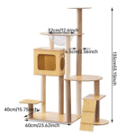 This Cat Tree is meticulously designed to fulfill your feline’s natural instincts, perfectly integrating climbing, scratching, resting, and playing functions. The main structure features premium natural sisal-wrapped scratching posts that not only protect your furniture from claw damage but also satisfy your cat’s innate scratching needs. The multi-level platforms are ingeniously designed to mimic natural elevation changes, with 1.2 to 2 meters of vertical space for your cat to fully enjoy leaping and climbing. The plush top perch, crafted from ultra-soft skin-friendly fabric, serves as the perfect sunbathing spot and a luxurious “royal throne” for your cat to oversee its domain.