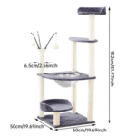 This Cat Tree is meticulously designed to fulfill your feline’s natural instincts, perfectly integrating climbing, scratching, resting, and playing functions. The main structure features premium natural sisal-wrapped scratching posts that not only protect your furniture from claw damage but also satisfy your cat’s innate scratching needs. The multi-level platforms are ingeniously designed to mimic natural elevation changes, with 1.2 to 2 meters of vertical space for your cat to fully enjoy leaping and climbing. The plush top perch, crafted from ultra-soft skin-friendly fabric, serves as the perfect sunbathing spot and a luxurious “royal throne” for your cat to oversee its domain.