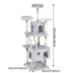 This Cat Tree is meticulously designed to fulfill your feline’s natural instincts, perfectly integrating climbing, scratching, resting, and playing functions. The main structure features premium natural sisal-wrapped scratching posts that not only protect your furniture from claw damage but also satisfy your cat’s innate scratching needs. The multi-level platforms are ingeniously designed to mimic natural elevation changes, with 1.2 to 2 meters of vertical space for your cat to fully enjoy leaping and climbing. The plush top perch, crafted from ultra-soft skin-friendly fabric, serves as the perfect sunbathing spot and a luxurious “royal throne” for your cat to oversee its domain.