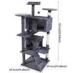 This Cat Tree is meticulously designed to fulfill your feline’s natural instincts, perfectly integrating climbing, scratching, resting, and playing functions. The main structure features premium natural sisal-wrapped scratching posts that not only protect your furniture from claw damage but also satisfy your cat’s innate scratching needs. The multi-level platforms are ingeniously designed to mimic natural elevation changes, with 1.2 to 2 meters of vertical space for your cat to fully enjoy leaping and climbing. The plush top perch, crafted from ultra-soft skin-friendly fabric, serves as the perfect sunbathing spot and a luxurious “royal throne” for your cat to oversee its domain.