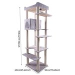 This Cat Tree is meticulously designed to fulfill your feline’s natural instincts, perfectly integrating climbing, scratching, resting, and playing functions. The main structure features premium natural sisal-wrapped scratching posts that not only protect your furniture from claw damage but also satisfy your cat’s innate scratching needs. The multi-level platforms are ingeniously designed to mimic natural elevation changes, with 1.2 to 2 meters of vertical space for your cat to fully enjoy leaping and climbing. The plush top perch, crafted from ultra-soft skin-friendly fabric, serves as the perfect sunbathing spot and a luxurious “royal throne” for your cat to oversee its domain.