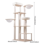 This Cat Tree is meticulously designed to fulfill your feline’s natural instincts, perfectly integrating climbing, scratching, resting, and playing functions. The main structure features premium natural sisal-wrapped scratching posts that not only protect your furniture from claw damage but also satisfy your cat’s innate scratching needs. The multi-level platforms are ingeniously designed to mimic natural elevation changes, with 1.2 to 2 meters of vertical space for your cat to fully enjoy leaping and climbing. The plush top perch, crafted from ultra-soft skin-friendly fabric, serves as the perfect sunbathing spot and a luxurious “royal throne” for your cat to oversee its domain.