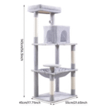 This Cat Tree is meticulously designed to fulfill your feline’s natural instincts, perfectly integrating climbing, scratching, resting, and playing functions. The main structure features premium natural sisal-wrapped scratching posts that not only protect your furniture from claw damage but also satisfy your cat’s innate scratching needs. The multi-level platforms are ingeniously designed to mimic natural elevation changes, with 1.2 to 2 meters of vertical space for your cat to fully enjoy leaping and climbing. The plush top perch, crafted from ultra-soft skin-friendly fabric, serves as the perfect sunbathing spot and a luxurious “royal throne” for your cat to oversee its domain.