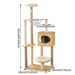 This Cat Tree is meticulously designed to fulfill your feline’s natural instincts, perfectly integrating climbing, scratching, resting, and playing functions. The main structure features premium natural sisal-wrapped scratching posts that not only protect your furniture from claw damage but also satisfy your cat’s innate scratching needs. The multi-level platforms are ingeniously designed to mimic natural elevation changes, with 1.2 to 2 meters of vertical space for your cat to fully enjoy leaping and climbing. The plush top perch, crafted from ultra-soft skin-friendly fabric, serves as the perfect sunbathing spot and a luxurious “royal throne” for your cat to oversee its domain.