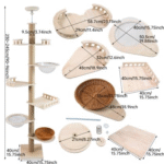 This Cat Tree is meticulously designed to fulfill your feline’s natural instincts, perfectly integrating climbing, scratching, resting, and playing functions. The main structure features premium natural sisal-wrapped scratching posts that not only protect your furniture from claw damage but also satisfy your cat’s innate scratching needs. The multi-level platforms are ingeniously designed to mimic natural elevation changes, with 1.2 to 2 meters of vertical space for your cat to fully enjoy leaping and climbing. The plush top perch, crafted from ultra-soft skin-friendly fabric, serves as the perfect sunbathing spot and a luxurious “royal throne” for your cat to oversee its domain.