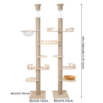 This Cat Tree is meticulously designed to fulfill your feline’s natural instincts, perfectly integrating climbing, scratching, resting, and playing functions. The main structure features premium natural sisal-wrapped scratching posts that not only protect your furniture from claw damage but also satisfy your cat’s innate scratching needs. The multi-level platforms are ingeniously designed to mimic natural elevation changes, with 1.2 to 2 meters of vertical space for your cat to fully enjoy leaping and climbing. The plush top perch, crafted from ultra-soft skin-friendly fabric, serves as the perfect sunbathing spot and a luxurious “royal throne” for your cat to oversee its domain.