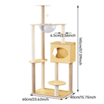 This Cat Tree is meticulously designed to fulfill your feline’s natural instincts, perfectly integrating climbing, scratching, resting, and playing functions. The main structure features premium natural sisal-wrapped scratching posts that not only protect your furniture from claw damage but also satisfy your cat’s innate scratching needs. The multi-level platforms are ingeniously designed to mimic natural elevation changes, with 1.2 to 2 meters of vertical space for your cat to fully enjoy leaping and climbing. The plush top perch, crafted from ultra-soft skin-friendly fabric, serves as the perfect sunbathing spot and a luxurious “royal throne” for your cat to oversee its domain.